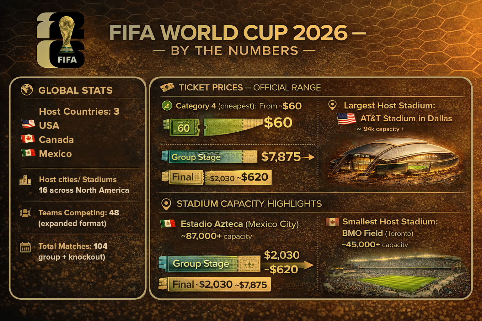 | Host Countries | USA (11 cities), Mexico (3), Canada (2) |